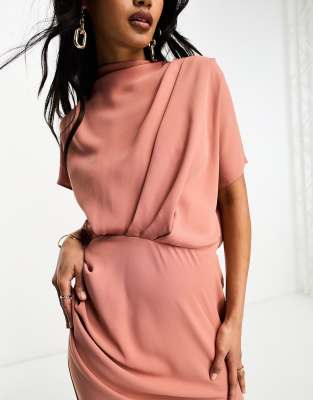 ASOS DESIGN high neck drape minimal cut out midi dress in