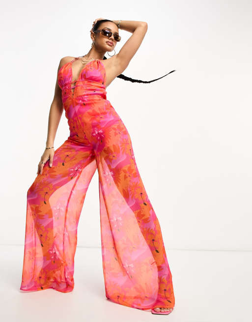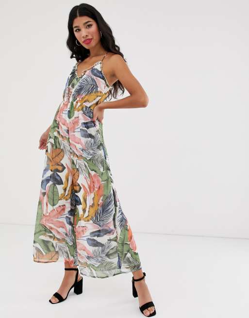 Asos sales tropical jumpsuit, ASYOU strappy chiffon jumpsuit in tropical print sales