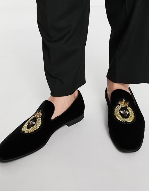 Asos sales velvet loafers, ASOS DESIGN loafers in black velvet with badge detail ASOS sales