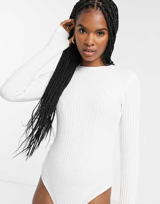 ASOS DESIGN rib bodysuit with bust seams and long sleeve in white