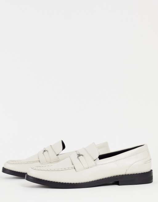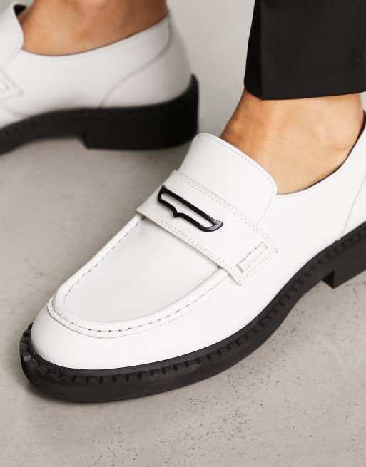 ASOS DESIGN chunky loafers in white leather with black hardware and contrast sole
