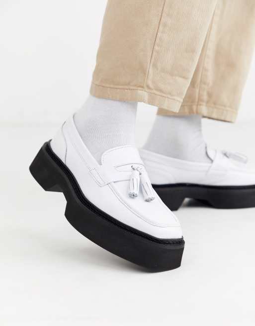 ASOS DESIGN loafer in white leather with chunky sole and square toe