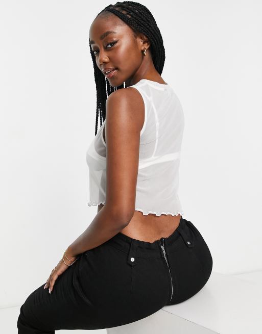 Asos white sales mesh top, ASOS DESIGN mesh top with asymmetric hem in white sales