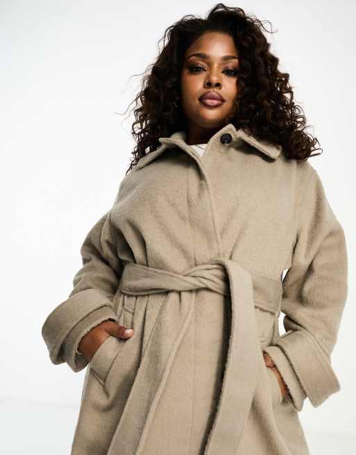 Asos wool sales coat womens, ASOS DESIGN Curve brushed boyfriend wool mix coat in mushroom sales