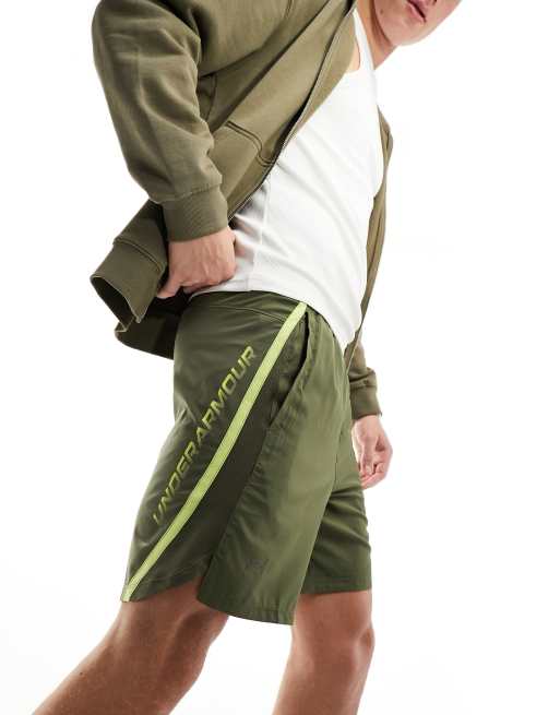 Under Armour Running Launch 7 inch graphic shorts in khaki