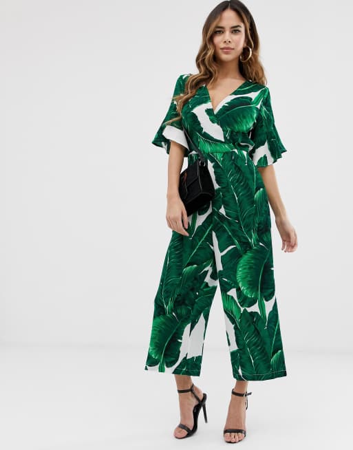 Ax paris leaf sales print jumpsuit, Leaf Printed Frill Detail Wrap Front Jumpsuit AX Paris sales