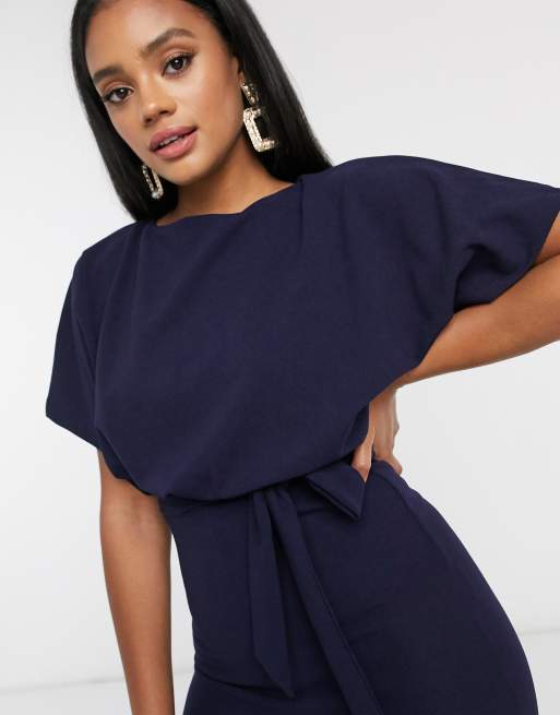 Navy Printed Puff Wrap Over Jumpsuit AX Paris
