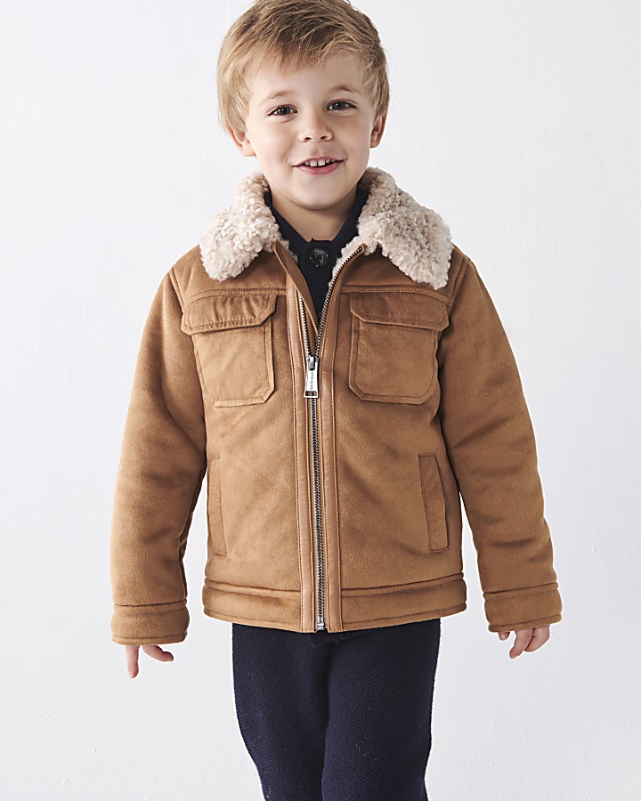 Mini boys faux leather hooded jacket epaulettes Shoulder hood