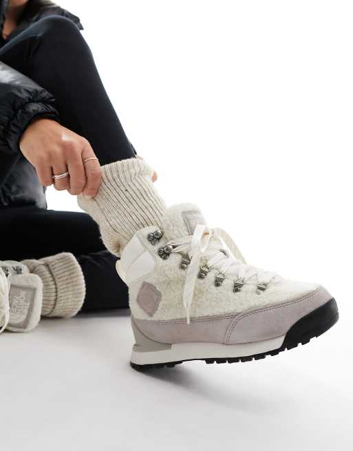 The North Face Back To Berkeley IV high pile and suede hiking boots in white and grey