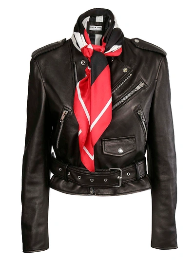 Balenciaga Scarf detailed Leather Biker Jacket In Black ModeSens