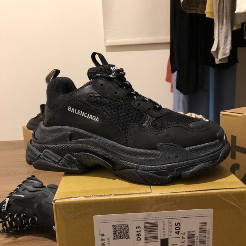 Top High quality Balenciaga FW17 Triple S distressed Balenciaga all black soul Black Black Men s Women s women s height increasing platform shoes