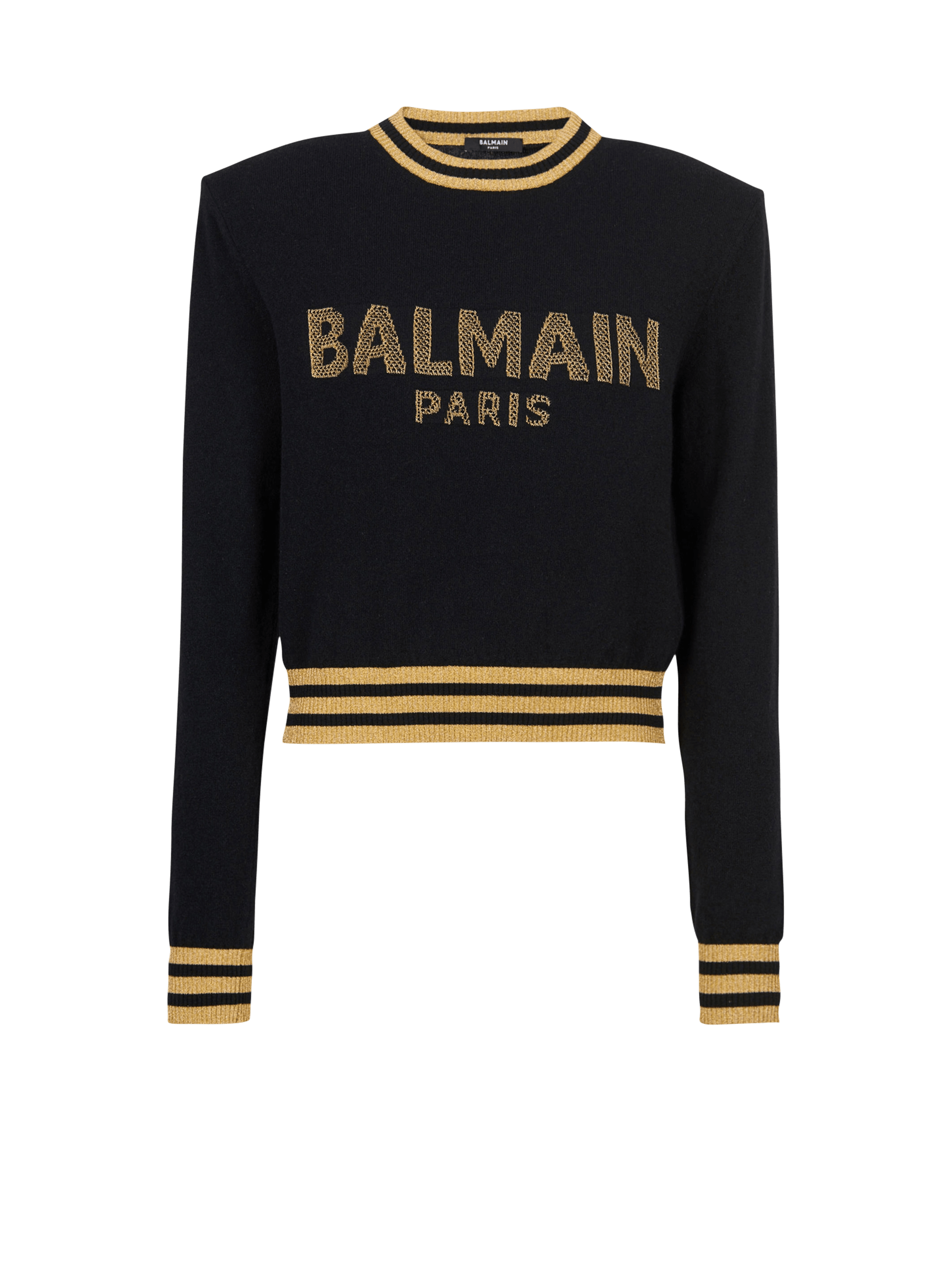 Cropped wool sweatshirt with gold Balmain logo Women BALMAIN