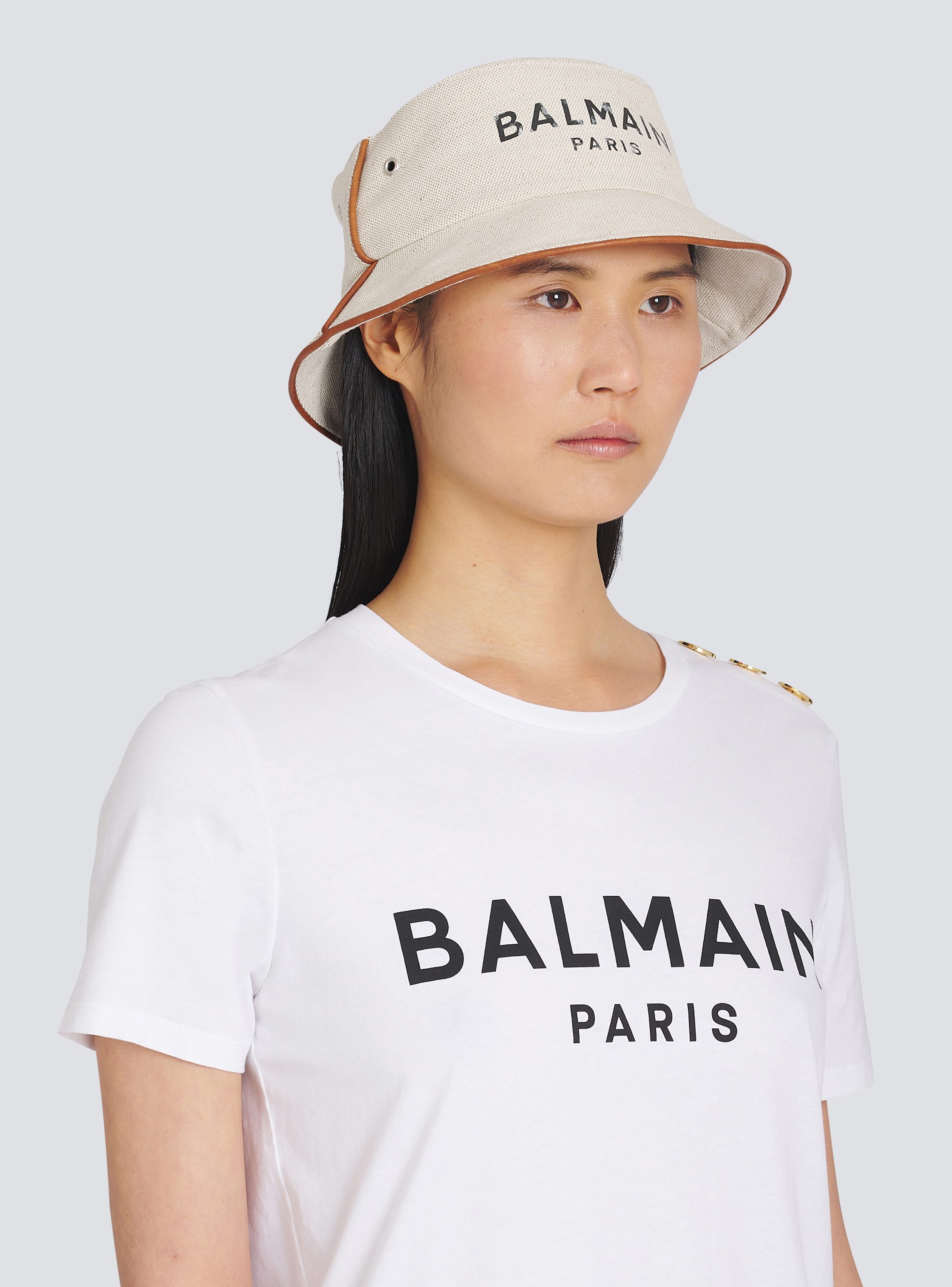 Cotton and leather B Army bucket hat with Balmain logo Women