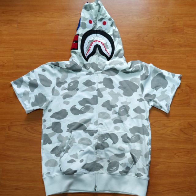 2017 BAPE Short sleeve shark full zip hoodie Black A Bathing Ape Size S