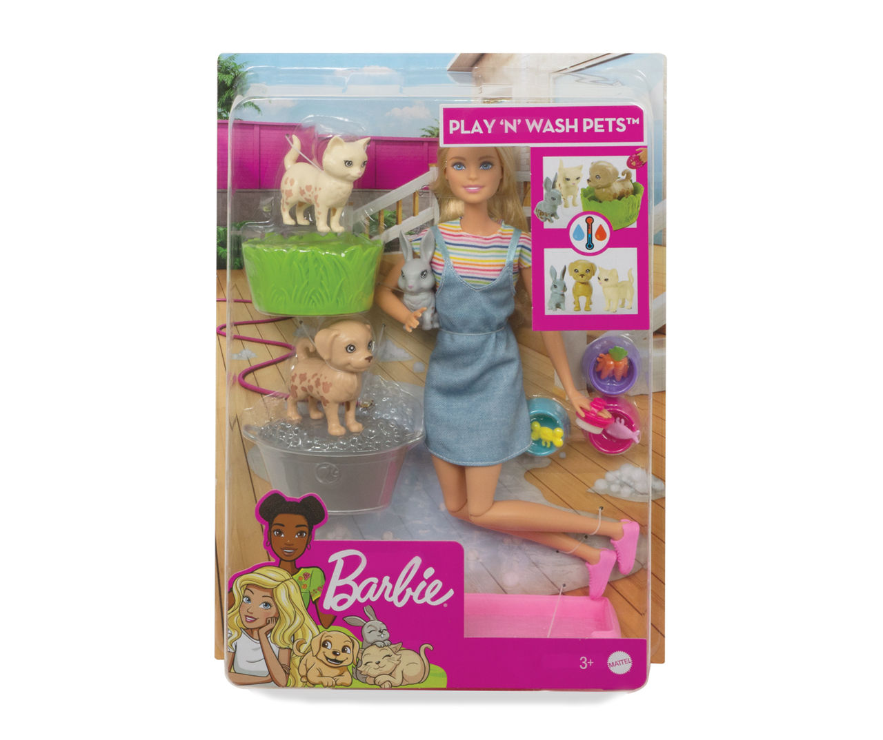 Barbie Play n Wash Pets Playset with Blonde Barbie Doll and 3