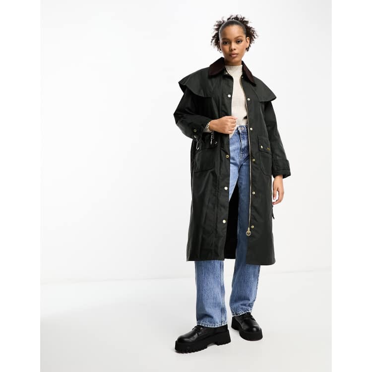 Barbour Fellbeck waterproof wax long jacket in sage ASOS