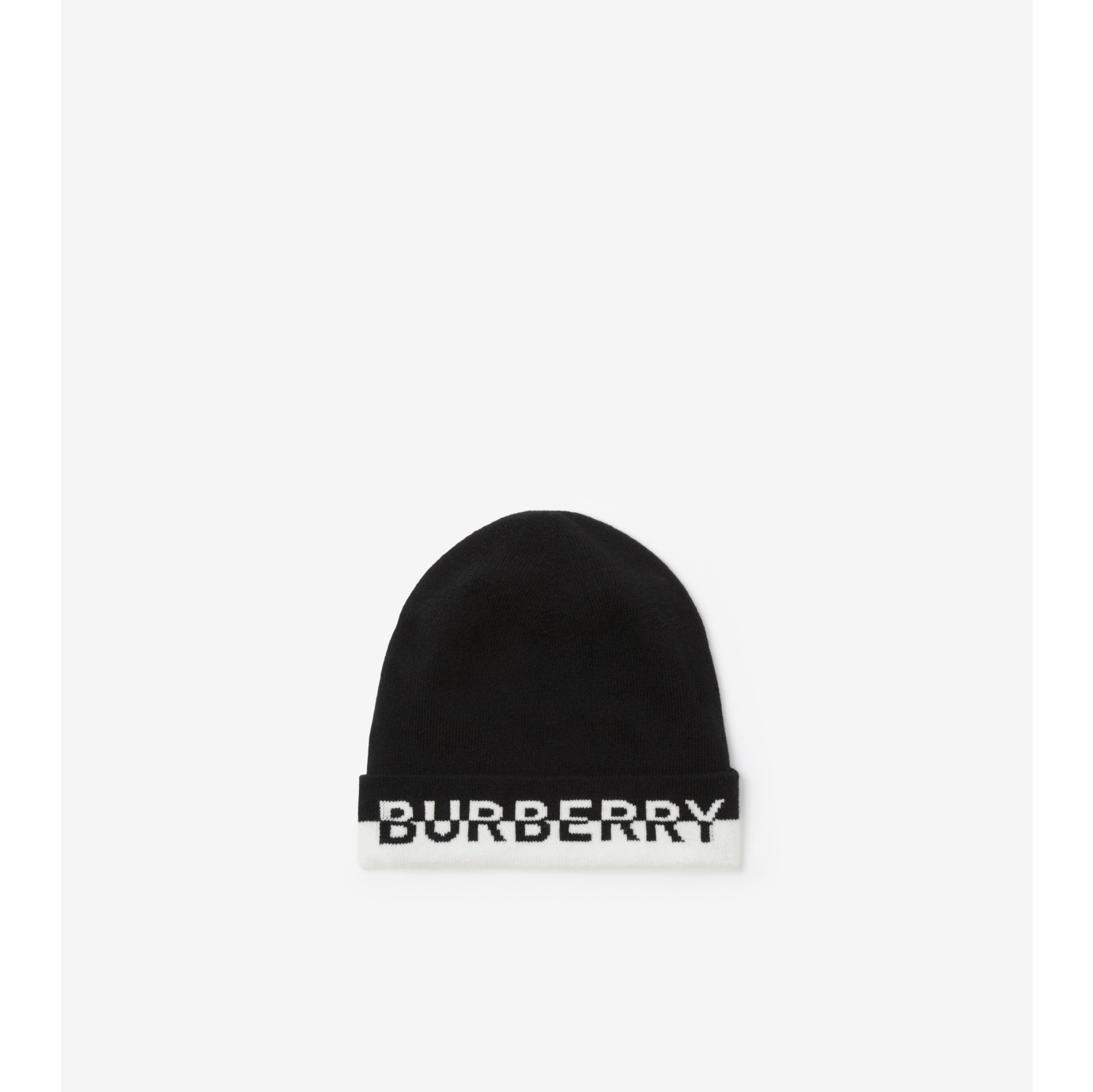 Logo Intarsia Cashmere Beanie in Black white Burberry Official