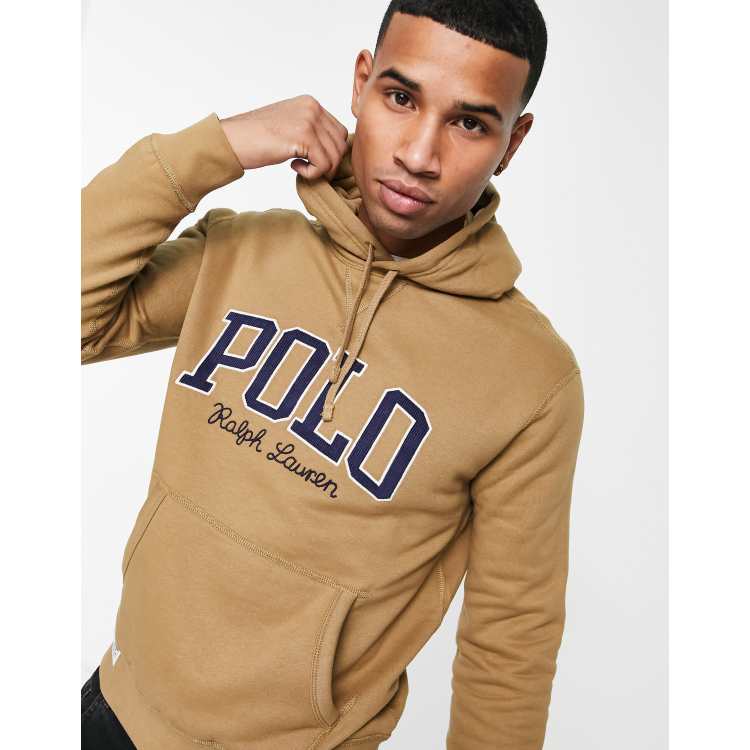 Beige sales polo hoodie, Polo Ralph Lauren Hoodie van fleece met logo in collegestijl in khaki beige sales