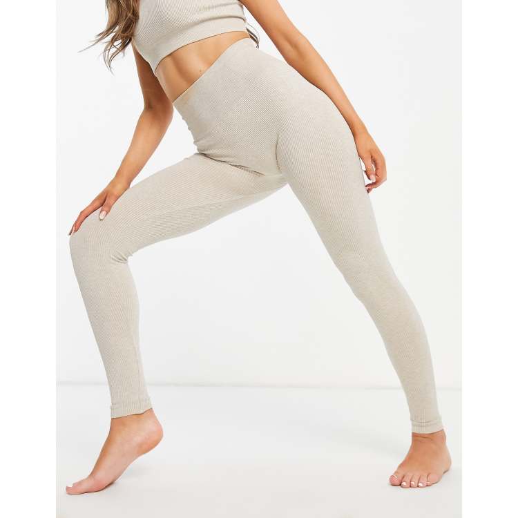 Other Stories Geribbelde yoga legging in beige melange deel van co ord set BEIGE