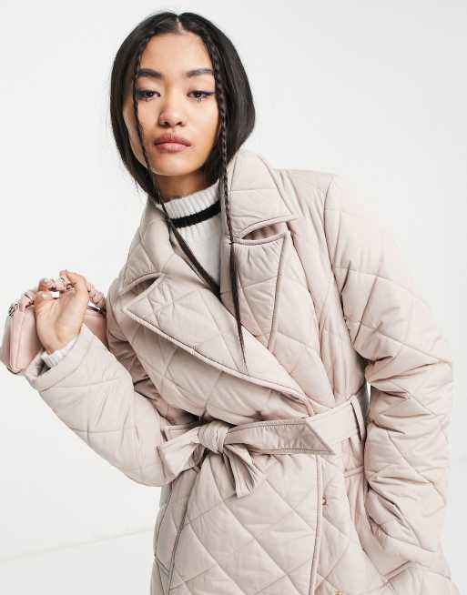 Miss Selfridge quilted longline belted coat in mink ASOS