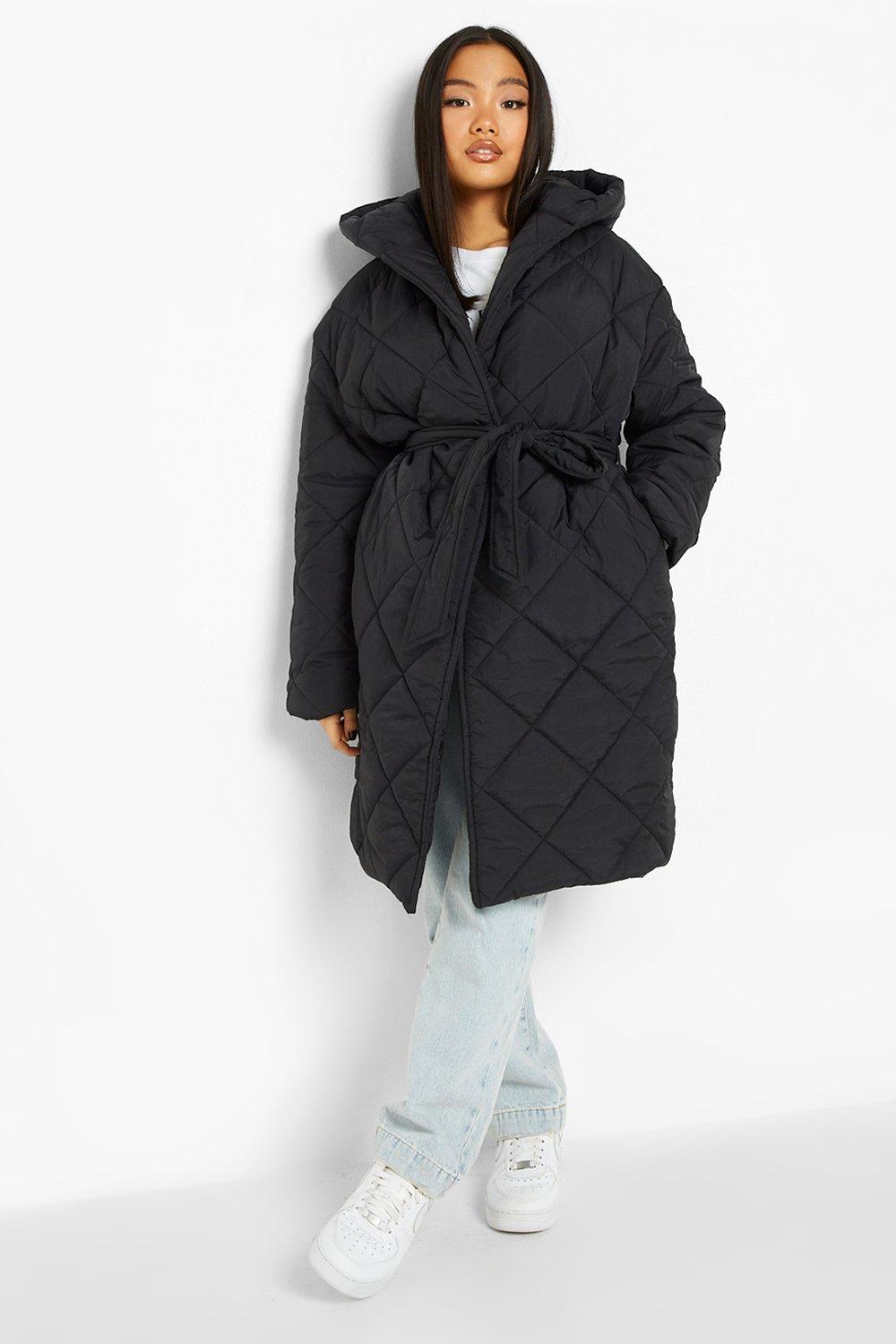 Belted sales quilted coat, Petite Diamond Quilted Belted Puffer Jacket sales