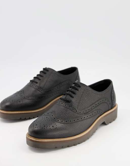 Ben Sherman Leren brogues met dikke zool en veters in zwart ASOS