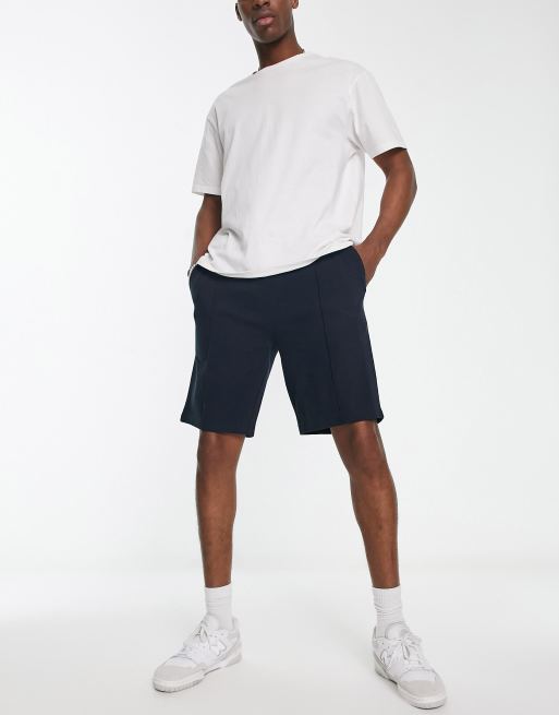 Ben Sherman Piqu short met siernaad in marineblauw ASOS
