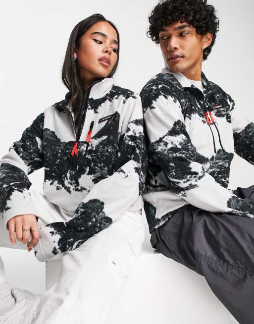 Berghaus Dean Street Prism Tango Uniseks fleece met 1 2 rits in grijs met digitale bergprint