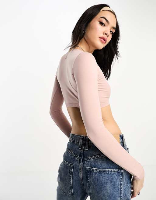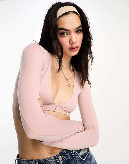 Bershka Bralette met lange mouwen en V hals in lichtroze