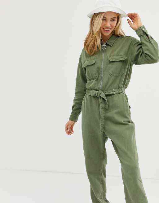 Bershka utility jumpsuit in khaki ASOS
