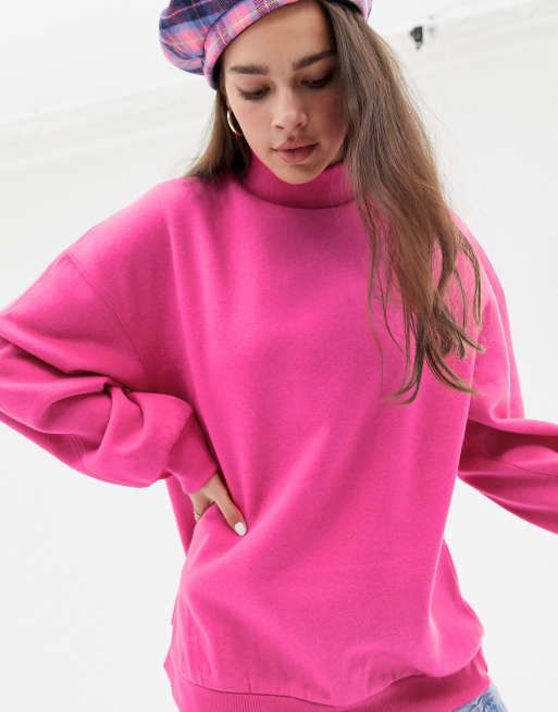 Bershka Hoogsluitende oversized sweater in neonroze