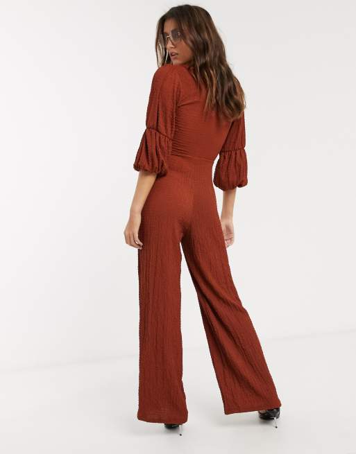 Bershka Jumpsuit met V hals en textuur in roestbruin