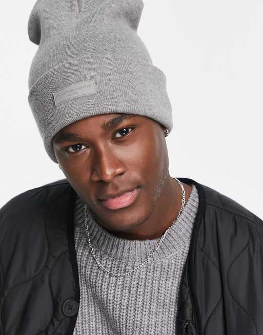 Abercrombie Fitch logo patch tall knit beanie in grey ASOS