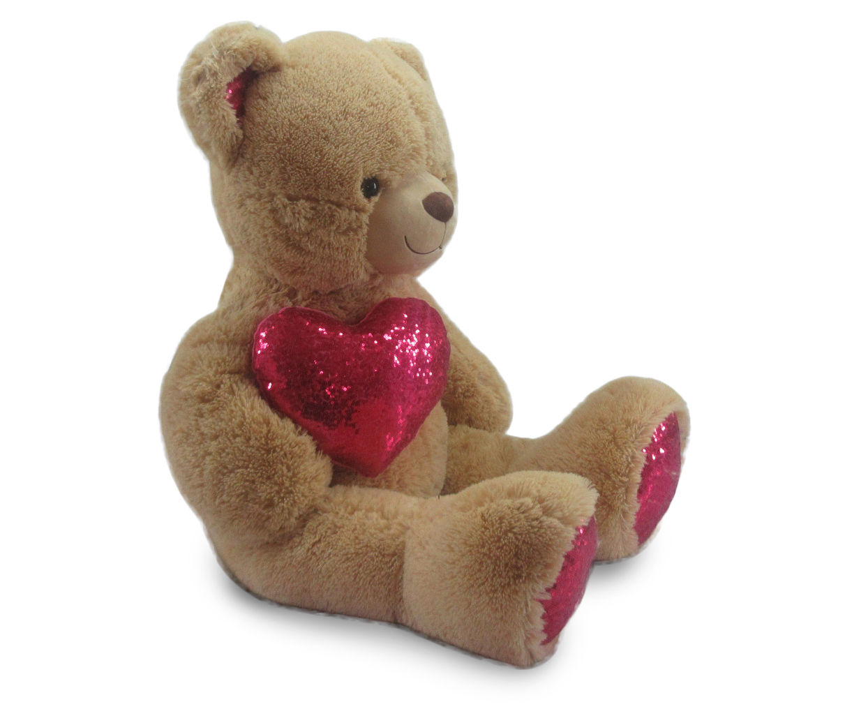 Giant Light Brown Bear Plush With Sequins Heart Big Lots