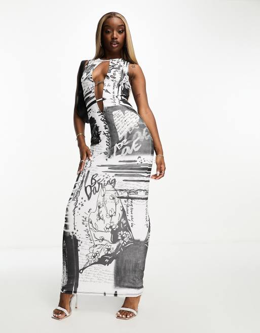 AFRM Inid Vestito lungo monocromatico aperto sul davanti ASOS