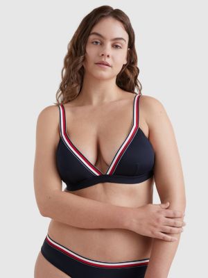 Bikini top sales tommy hilfiger, Signature Tape Unpadded Triangle Bikini Top Blue Tommy Hilfiger sales