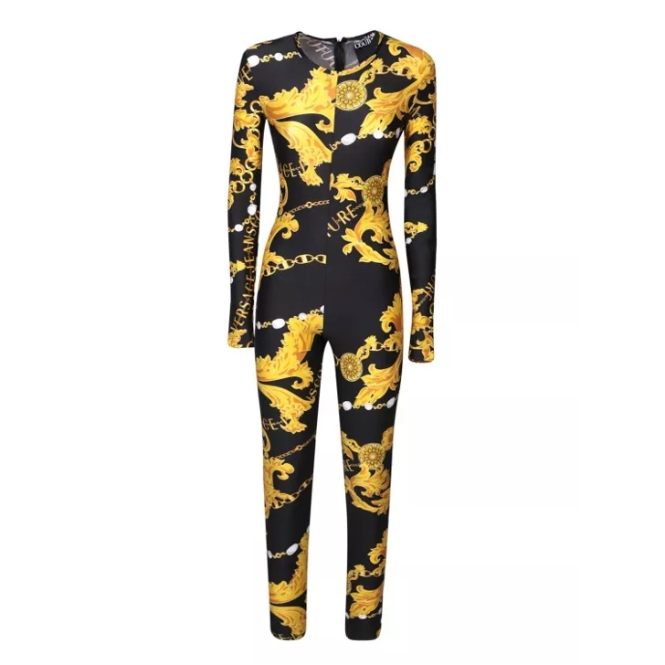 Versace Jeans Couture Chain Print Black Gold One Piece Jumpsuit