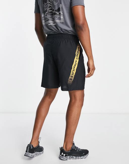 Under Armour Training woven side graphic shorts in black and yellow