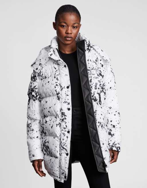 Black and white sales bubble coat, Womens Shiny Puffer Coat With Belt Black And White Weather sales