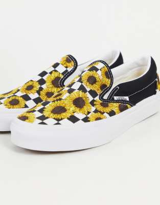 Vans Classic Slip On Sunflower Embroidery trainers in black and white
