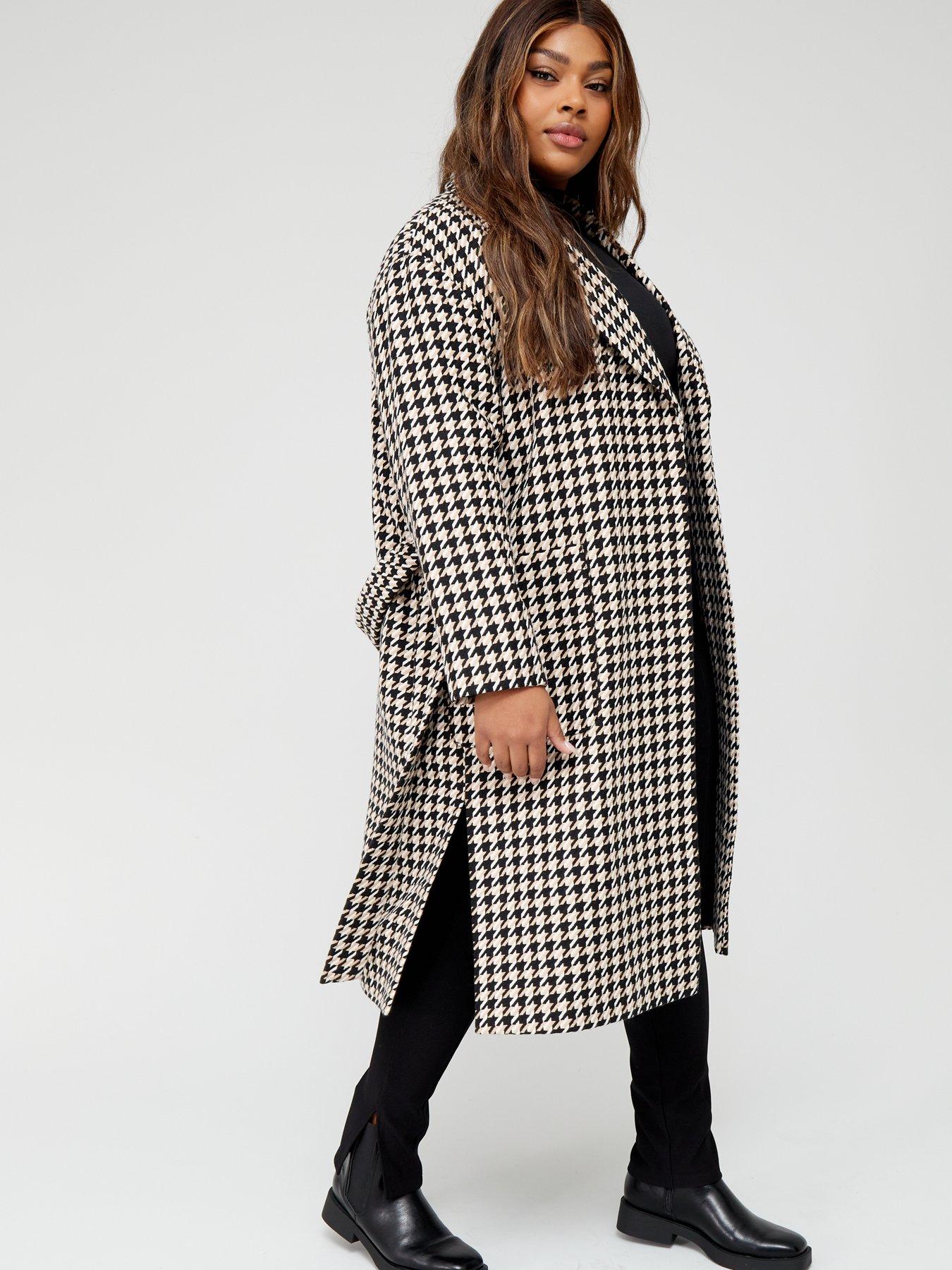 V by Very Curve Oversized Wrap Formal Houndstooth Coat Mono