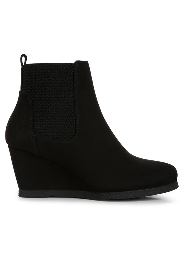 Black booties sales wedge heel, Dune Optimism Suede Wedge Heel Ankle Boots Black sales