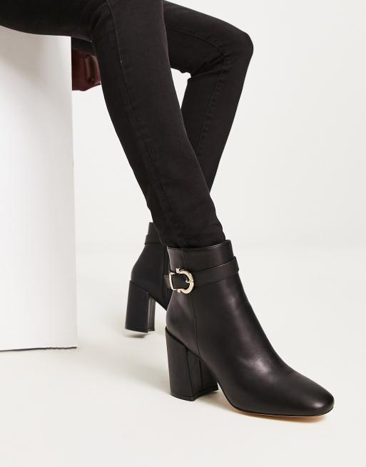 Black buckle sales ankle boots, London Rebel block heel buckle ankle boots in black sales