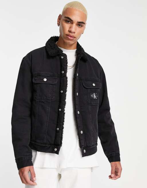 Calvin Klein Jeans sherpa lined denim jacket in black ASOS