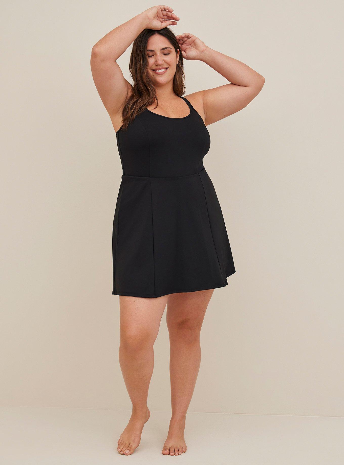 Plus Size Active Swim Dress with Shorts Underneath Matte Black