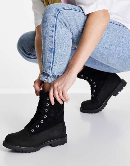 Black fold sales down timberlands, Timberland Authentics teddy fleece fold down boots in black nubuck sales