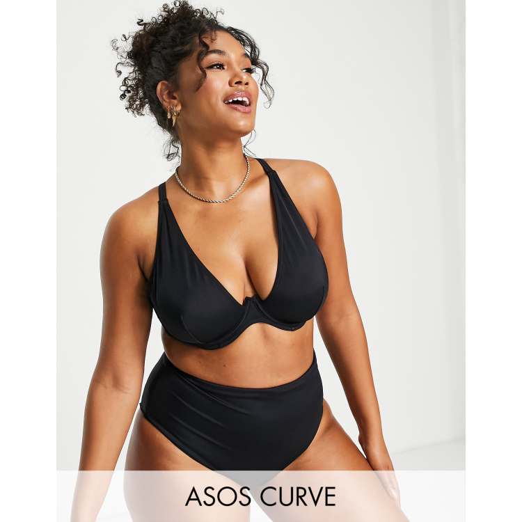 ASOS DESIGN Curve mix and match high waist bikini bottom in black