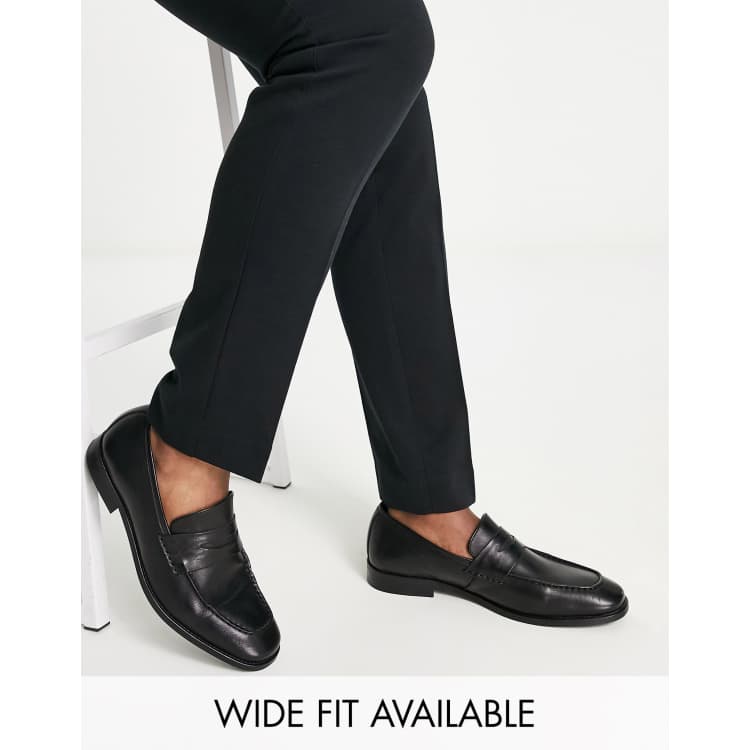 Black leather sales penny loafers, ASOS DESIGN black leather penny loafer ASOS sales