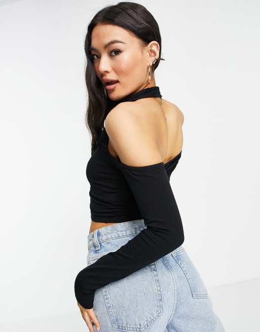 ASOS DESIGN long sleeve halter neck crop top in black ASOS