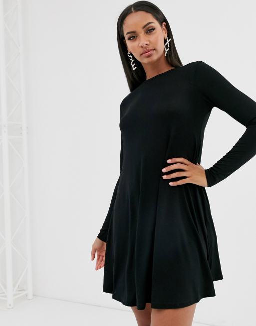 Boohoo basic scoop neck long sleeve swing dress in black ASOS